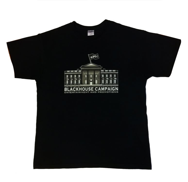 100% cotton classic TM BlackHouse Campaign logo heat printed on front. (back of the shirt contains no images)